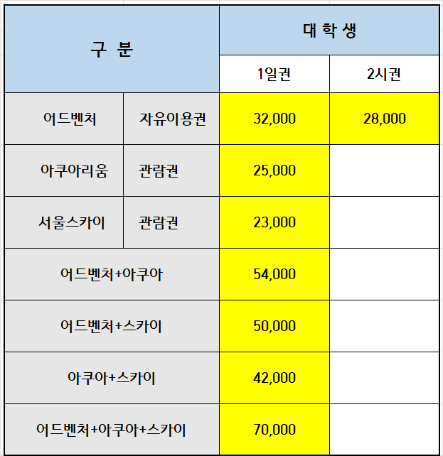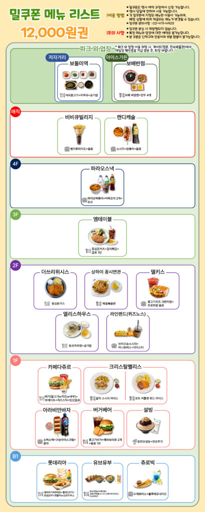 롯데월드학생단체 학교단체 교회단체 학원단체 태원도단체 성당단체 지역아동센터 단체 현장학습 체험학습 체육관단체 종교단체 대학생단체 대학교단체 기업체단체 기업단체 회사단체 워크삽단체 워크샾단체 대학단체 롯데월드 기업단체 대학교 단체 가격 안내 밀쿠폰 안내 어드벤처 내의 지정된 사업장에서 사용할 수 있는 밀쿠폰(식권) 으로 10,000원 권 / 12,000원 권이 있습니다.(최신 버전의 식권 메뉴와 지도는 별도로 안내 해 드리겠습니다.) 롯데월드 신청하기 아래 신청서를 작성하여 보내주시면확인 후 개별 연락드립니다. 롯데월드 공식지정파트너사 크라드여행사 ‘김영훈실장’ 문의 010-8784-3981, 1800-8714 이 양식을 작성하려면 브라우저에서 JavaScript를 활성화하십시오.성함 *연락처 *지역 (ex.서울 송파) *단체명 (ex.롯데초등학교) *학년 / 학급수 (ex. 1학년 / 7개반) *이용 일자 (ex. 24년 5월 10일) *학생 인원 *인솔 교사 인원 *이용 권종 (중복 선택 가능) *어드벤처아쿠아리움서울스카이아이스링크패키지인 경우 해당하는 권종을 모두 선택해주세요.밀쿠폰 (어드벤처 이용시 선택 가능)10,000원 권12,000원 권선택 안함(밀쿠폰 선택시) 수량기타 요청사항신청하기